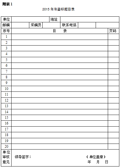 一、关于“2015年年鉴标题目录”(附表1)的填写。