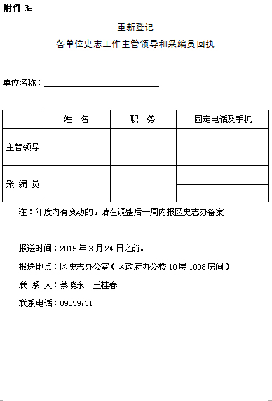 报送地点:区史志办公室(区政府办公楼10层1008房间)